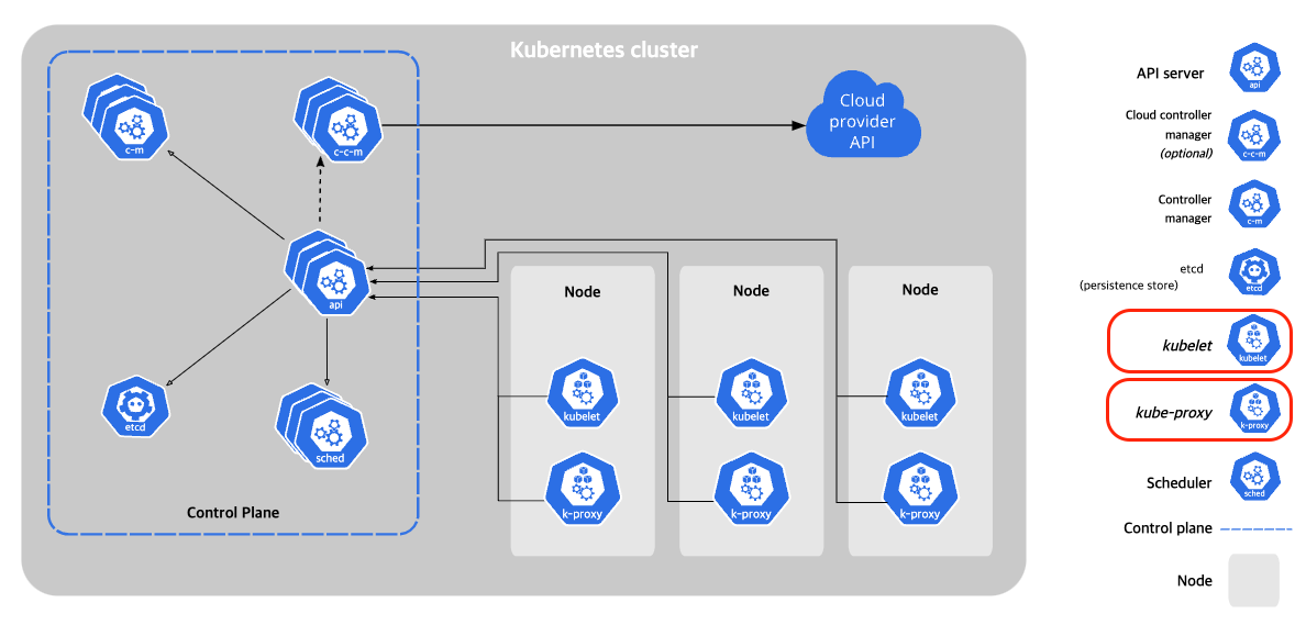 Worker node component로 해당되는 것들은 그림에 따로 빨간색으로 표시해둔 것들이다.