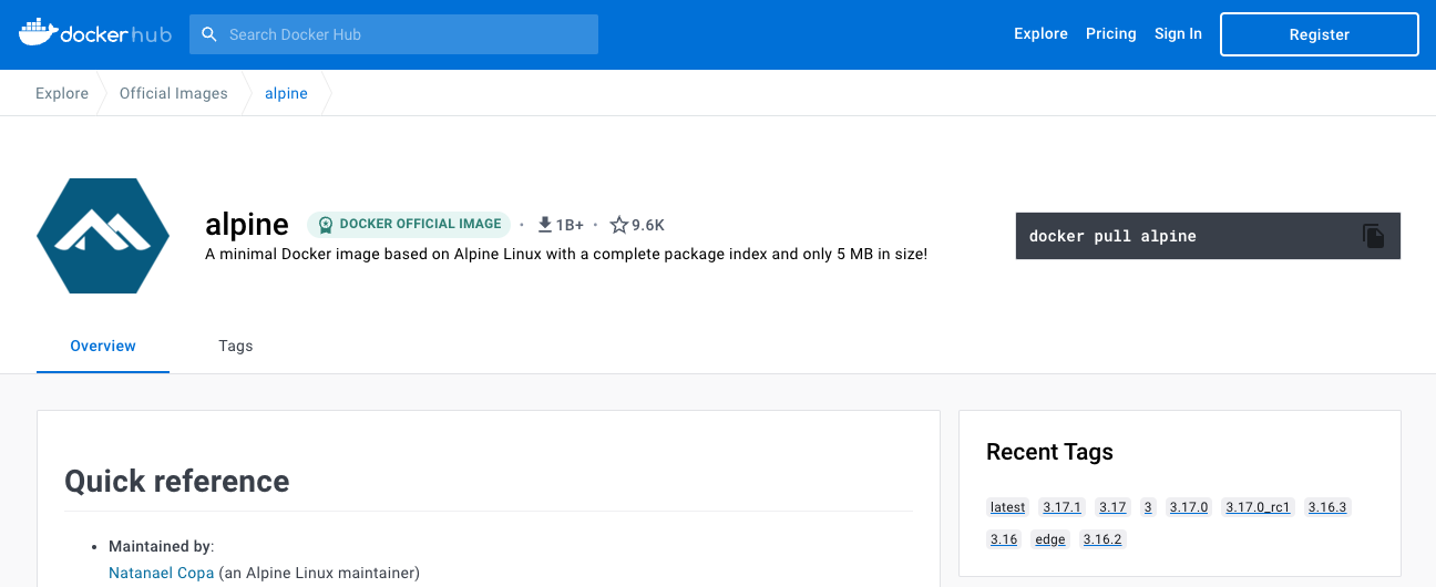 Status: Downloaded newer image for alpine:latest