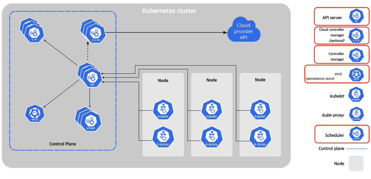 Control-plane component로 해당되는 것들은 그림에 따로 빨간색으로 표시해둔 것들이다.